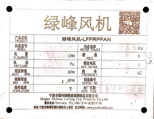 玻璃鋼離心風(fēng)機(jī)標(biāo)牌明細(xì):